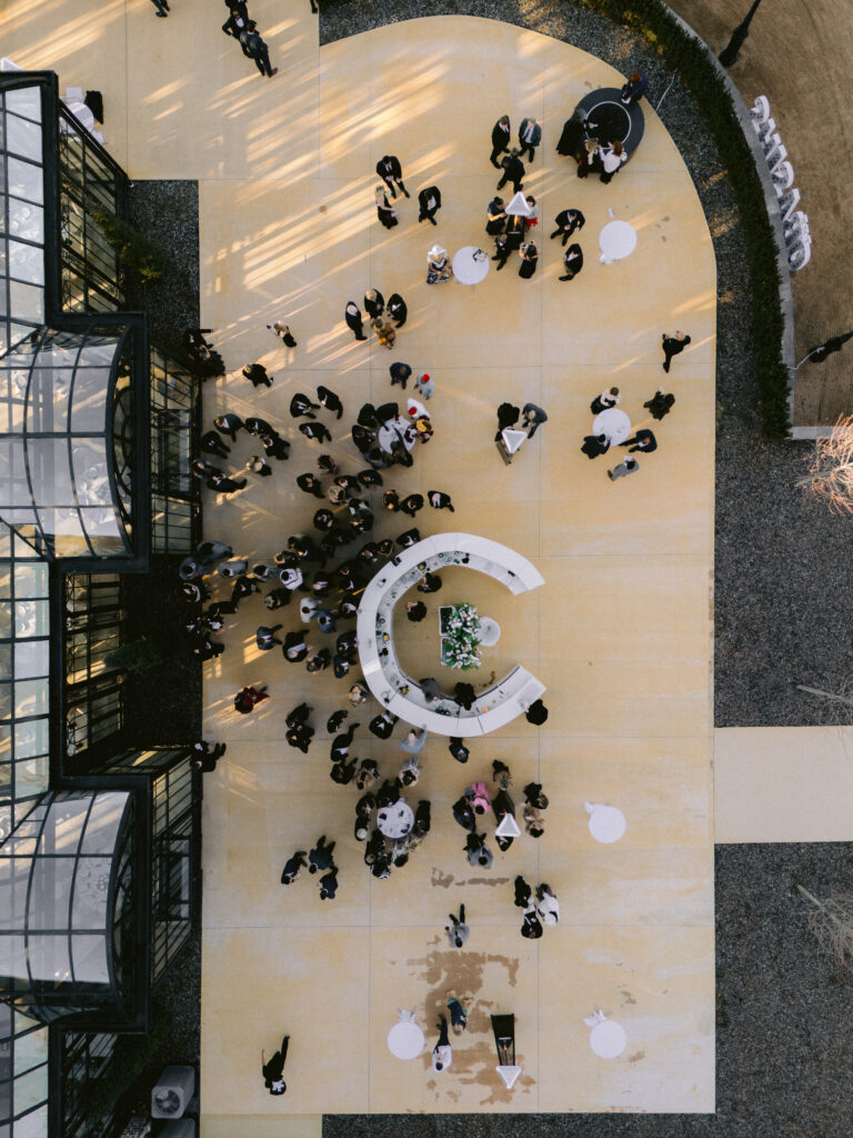 The Ceremony Courtyard is equally unforgettable. Historic French castle doors and a marble dome create a one-of-a-kind backdrop for your vows. Soft greenery surrounds the space, adding a romantic and natural touch.
