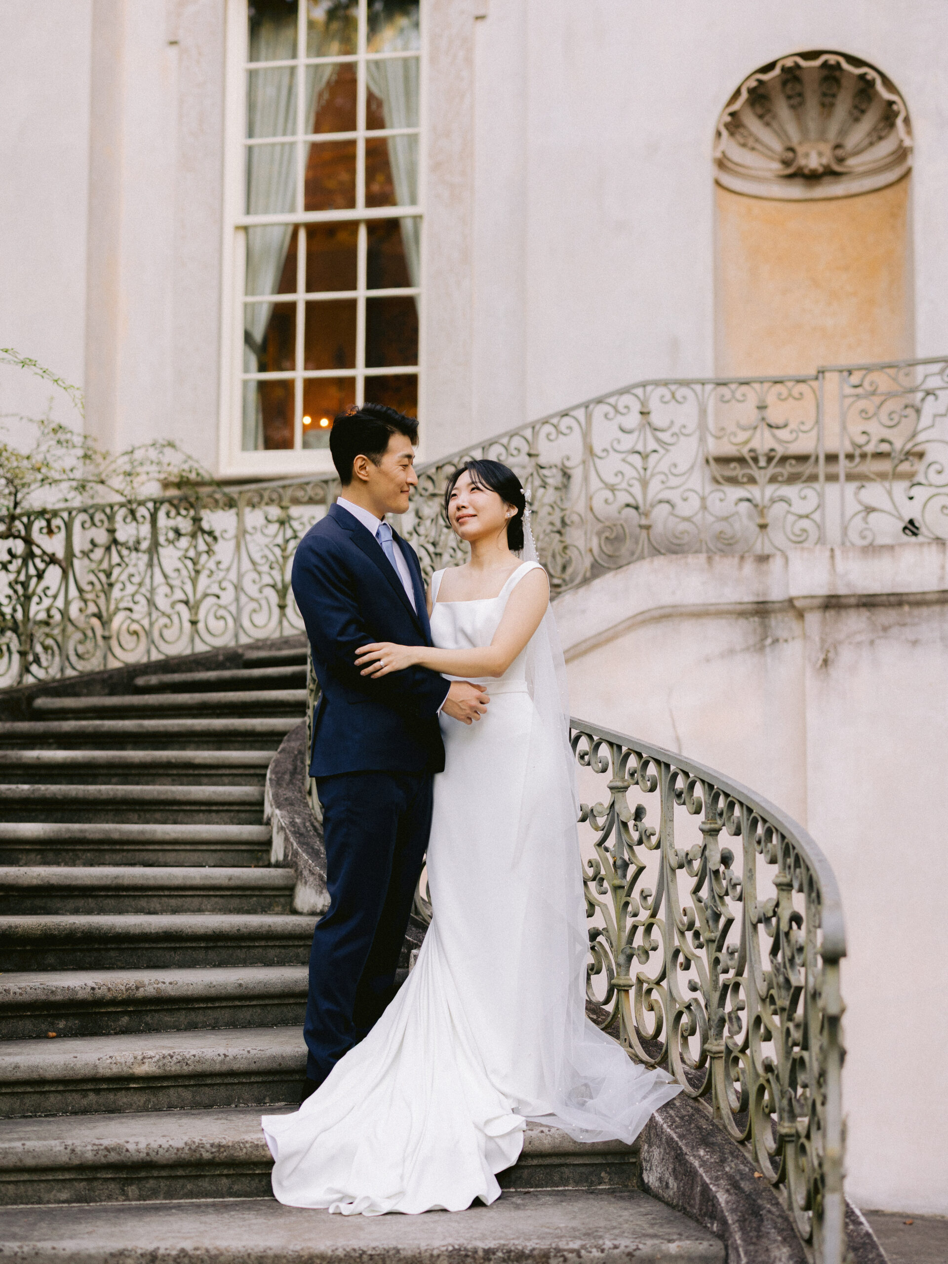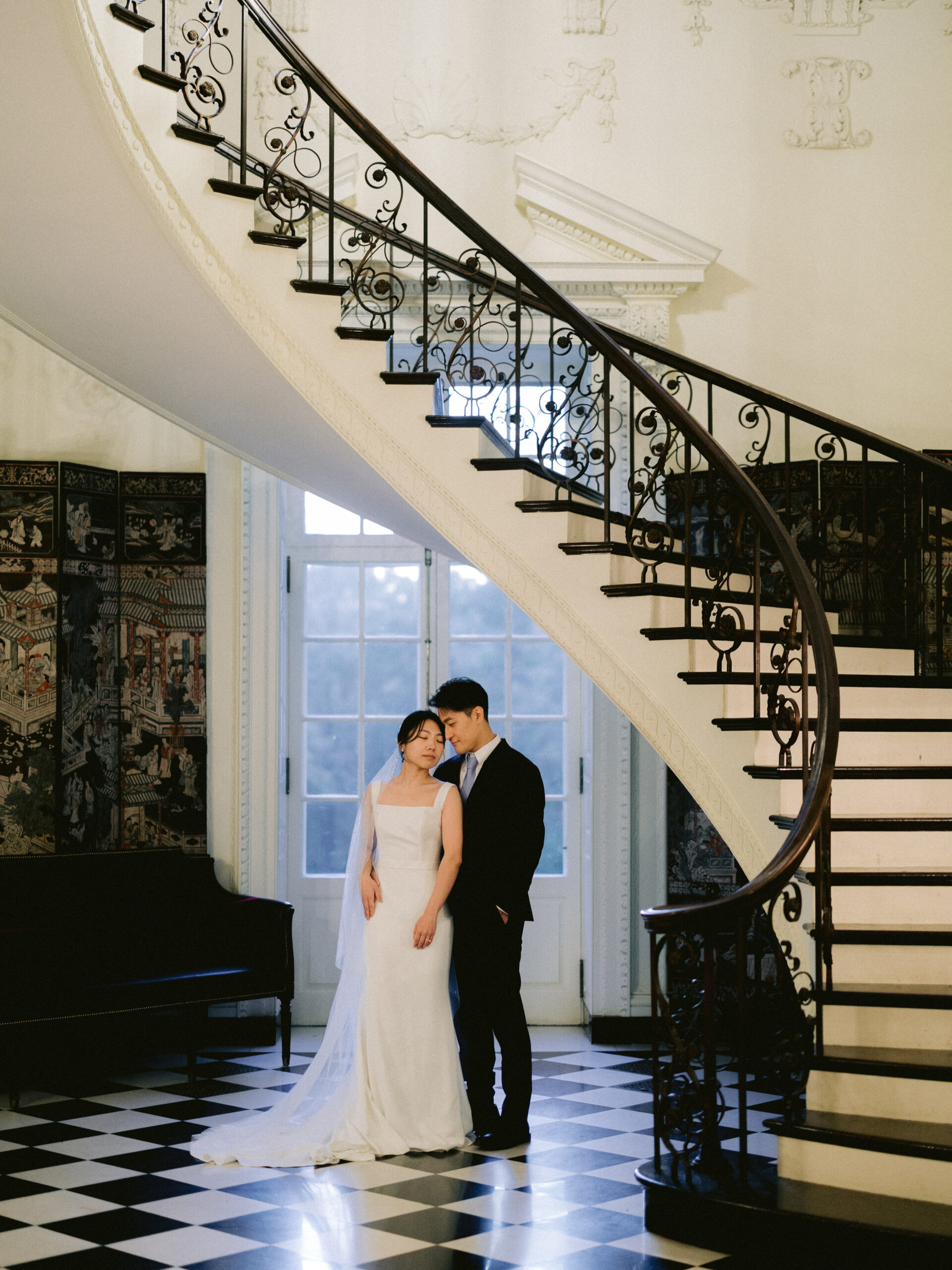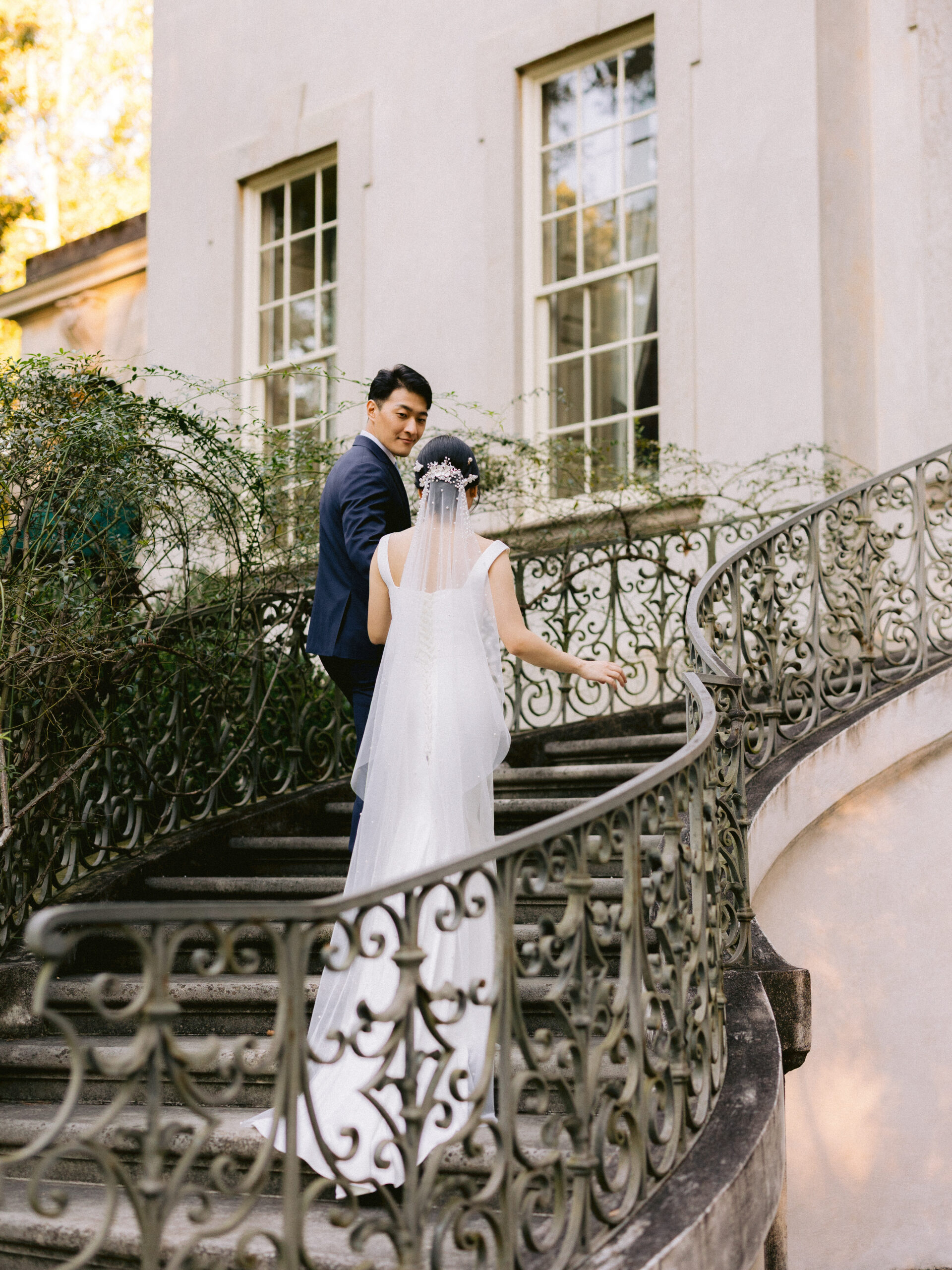 Although they originally considered hosting their wedding at the Swan House, the couple later chose a more intimate destination celebration. However, they couldn’t resist returning to the estate for their portraits. Its grand staircase, vintage car, and elegant indoor spaces offered a European charm that made every photo feel timeless.