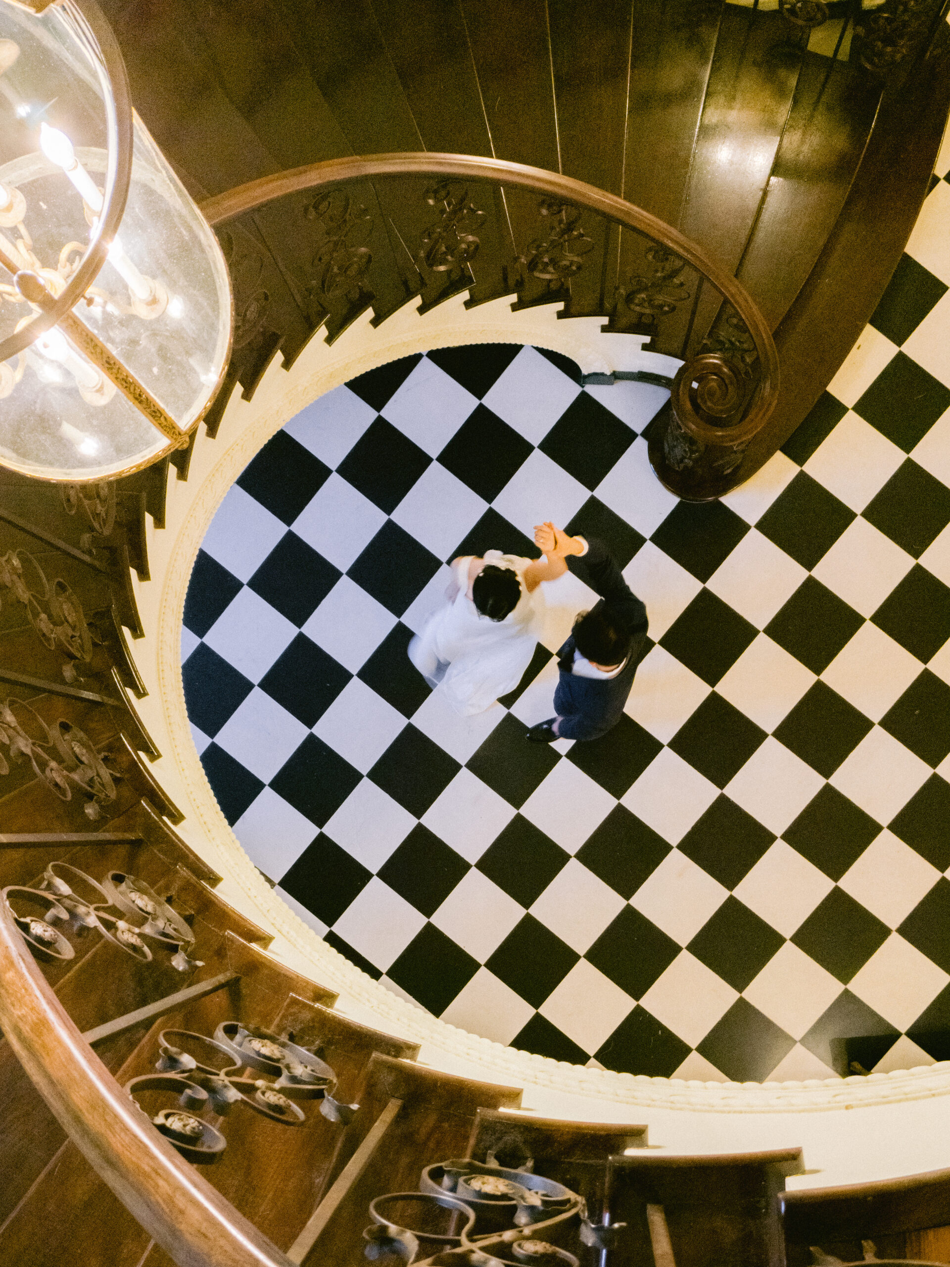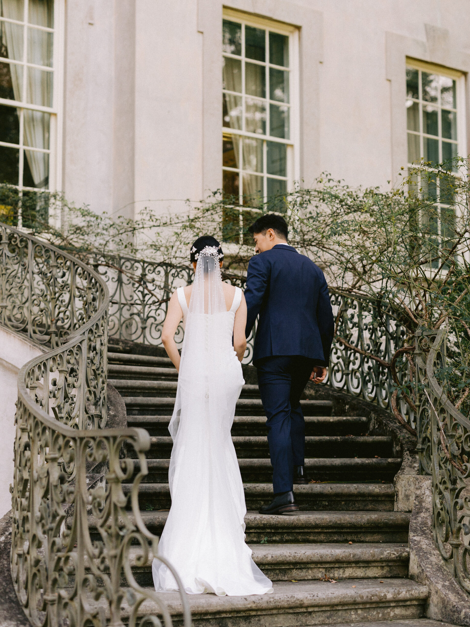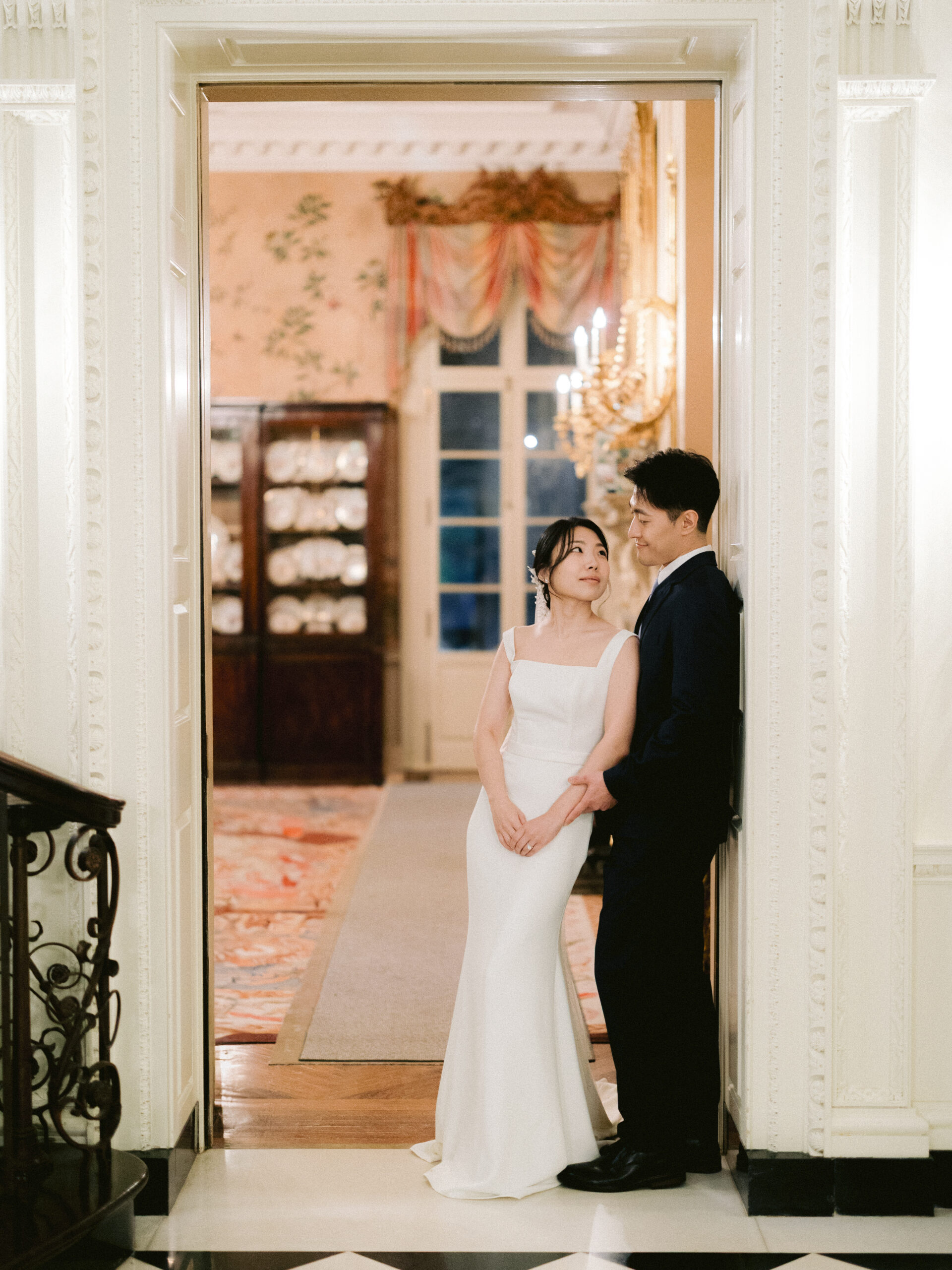 Although they originally considered hosting their wedding at the Swan House, the couple later chose a more intimate destination celebration. However, they couldn’t resist returning to the estate for their portraits. Its grand staircase, vintage car, and elegant indoor spaces offered a European charm that made every photo feel timeless.