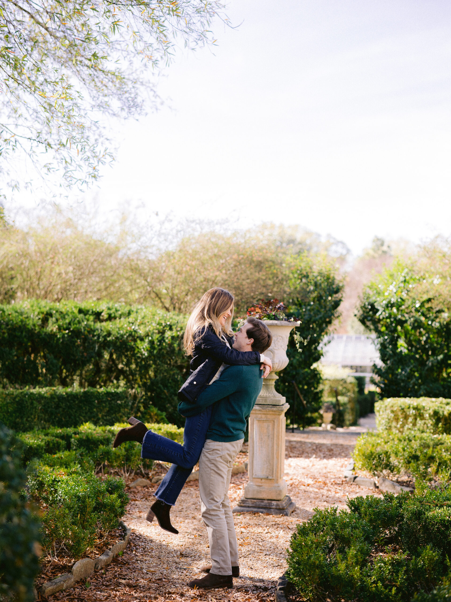 We photographed this session at Hills and Dales Estate in LaGrange, Georgia. It is a refined, historic property with formal gardens and peaceful walking paths. Although the estate feels grand, it still allows sessions to feel relaxed and personal.